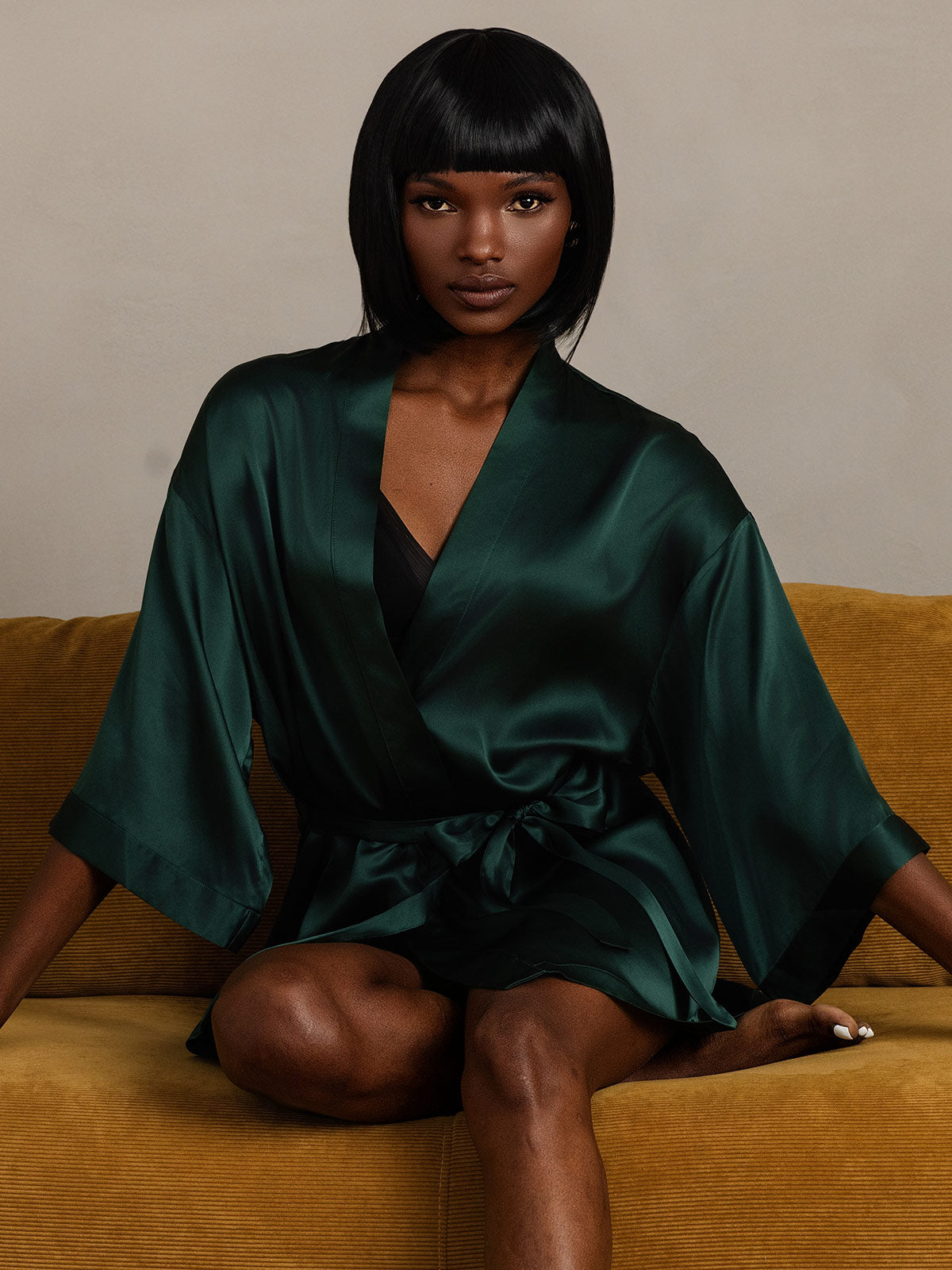 Glänzende reine Seide kurze Morgenmäntel für Frauen