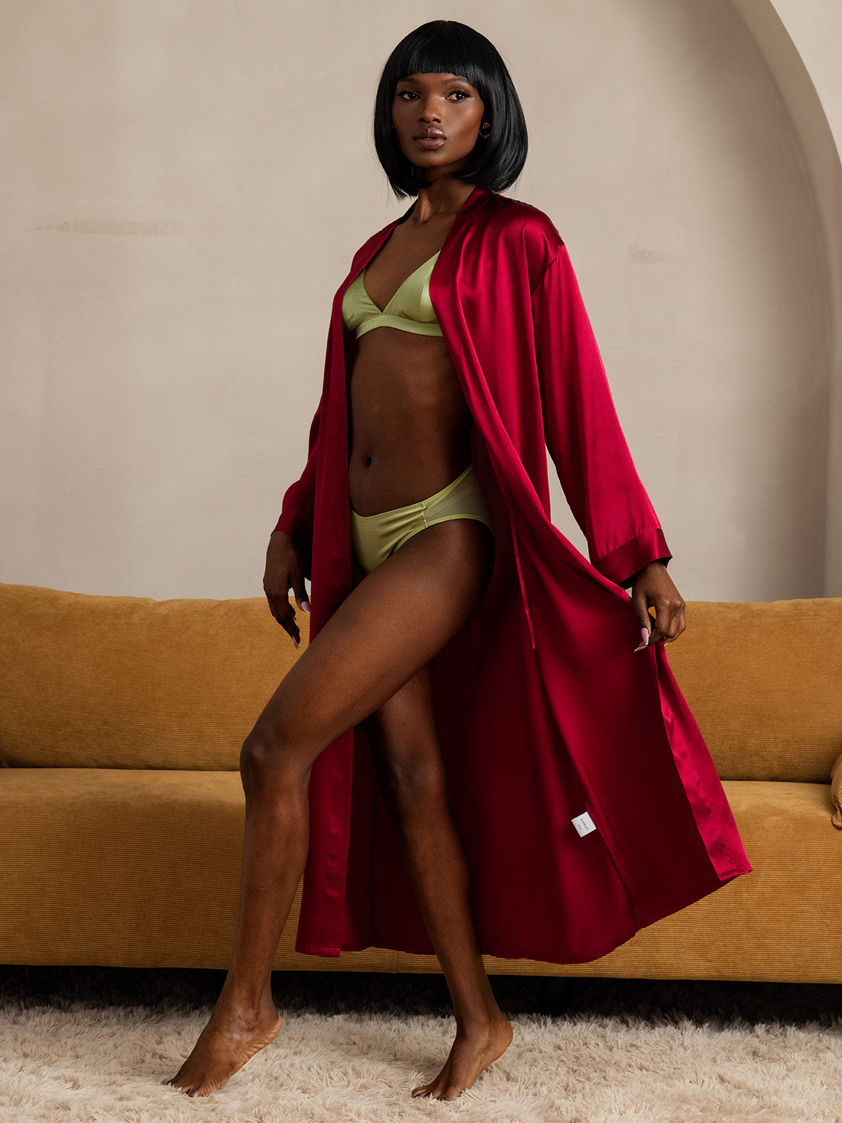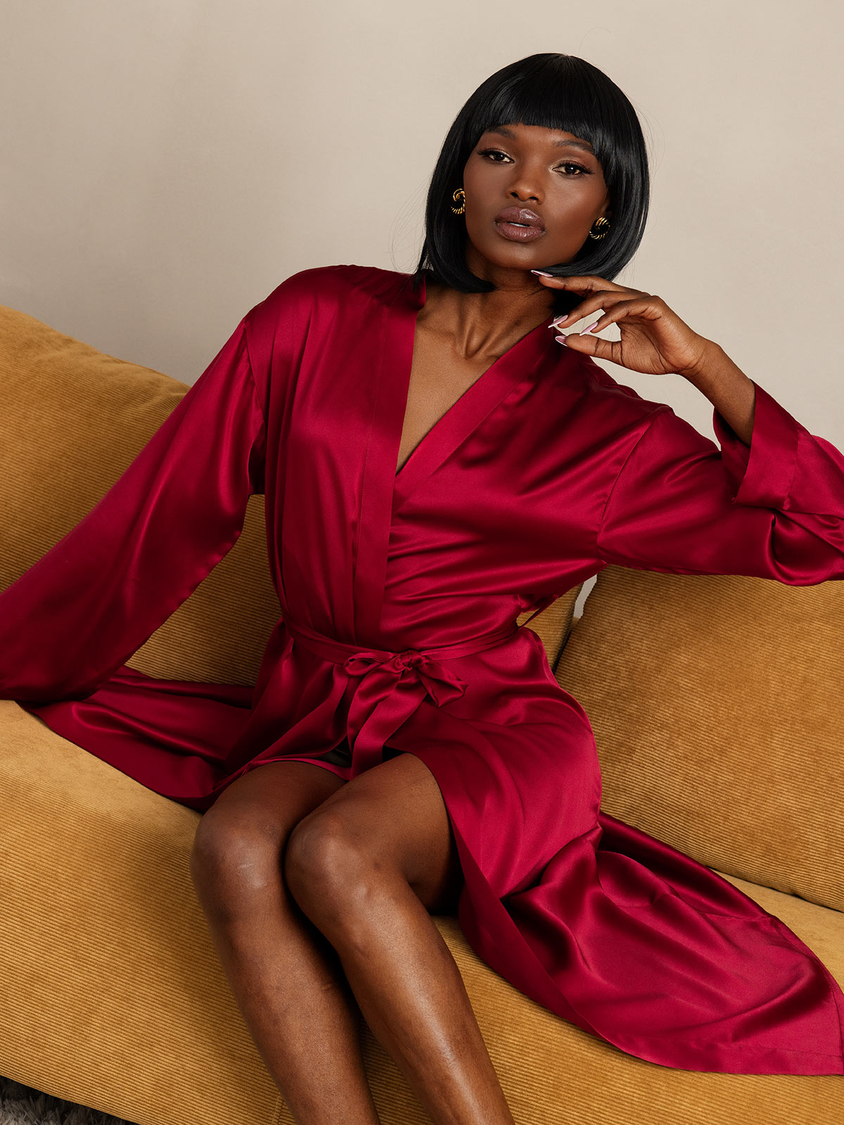 • Details:Hüllen Sie sich in puren Luxus mit unseren Seidenroben für Damen, exquisit gefertigt für unvergleichlichen Komfort und zeitlose Eleganz.