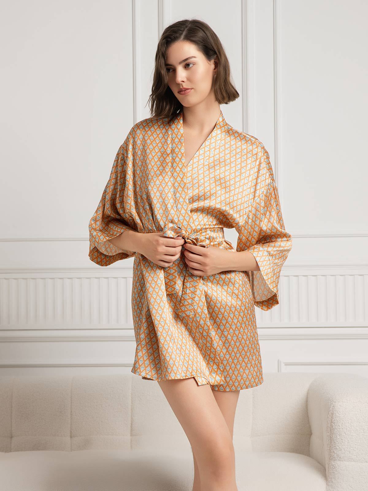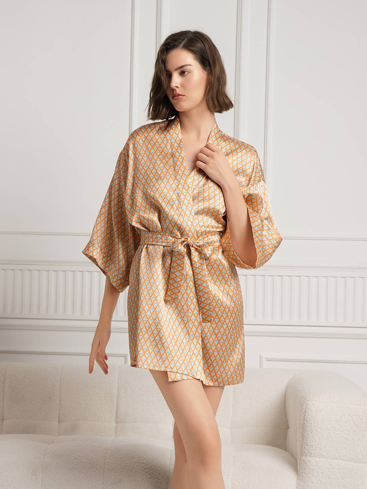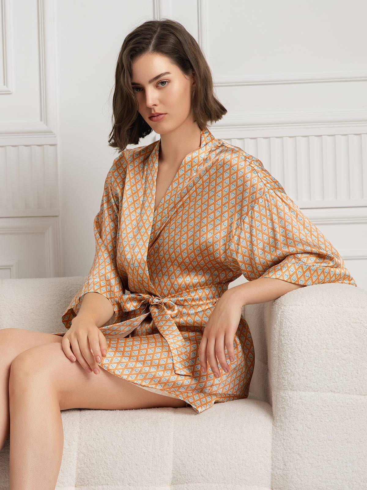 Reine Seide Drucken 3/4-lange Ärmel Damen Morgenmantel (Mit Gürtel)