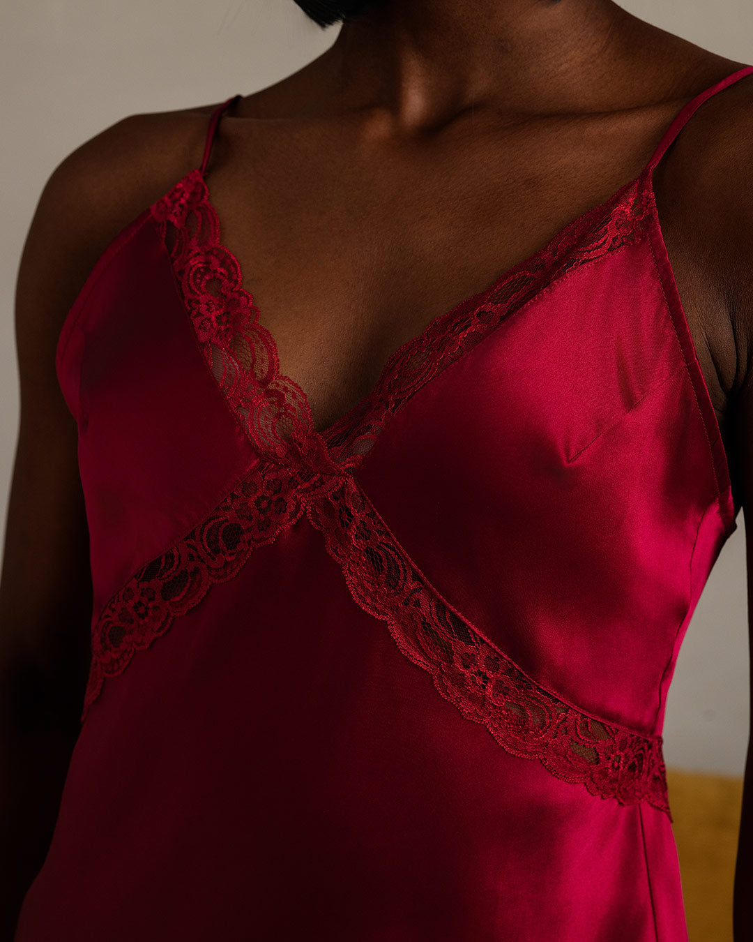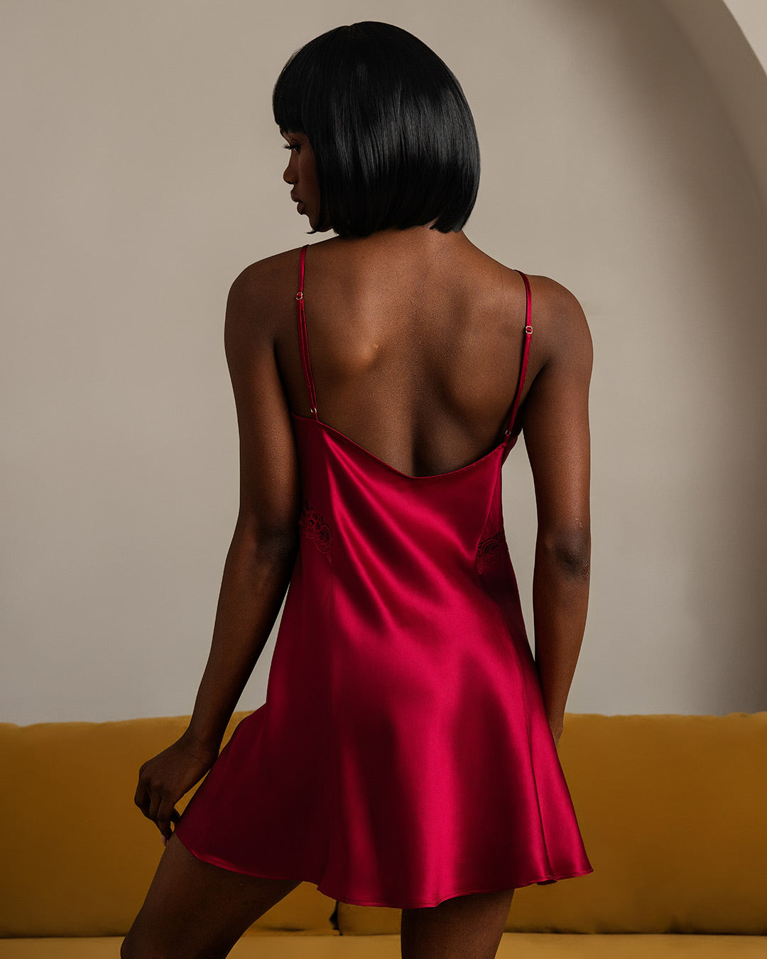 • Details: Dieses pure Seidenkleid mit zarten Spaghettiträgern und feinen Spitzenakzenten am Ausschnitt strahlt luxuriösen Charme aus. Hergestellt aus 100% Maulbeerseide, ist es weich, atmungsaktiv und äußerst angenehm zu tragen. Der kurze Schnitt verleiht ihm eine verführerische Note, perfekt als aufmerksames Geschenk für eine geliebte Person. Ein ganz besonderes Highlight in deinem Kleiderschrank.