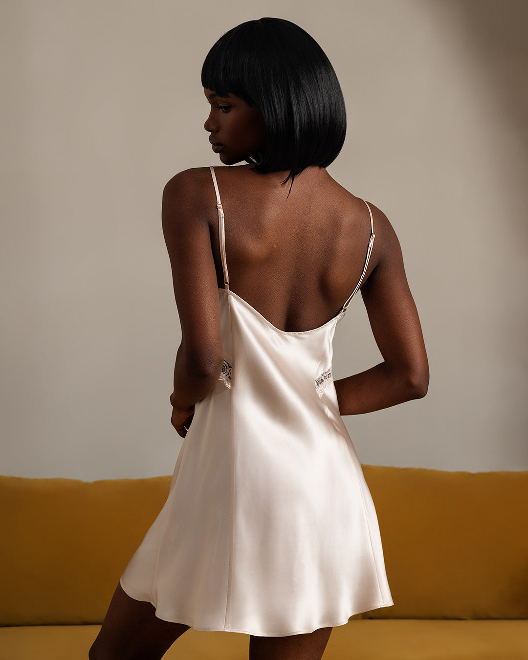 Reine Seide Spaghettiträger Rückenfreies Slipkleid